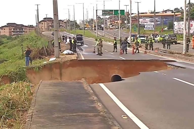 A rodovia CE-025, fundamental para a ligação entre Fortaleza e Aquiraz, sofreu um colapso devastador na manhã de segunda-feira (27), após intensa chuva que atingiu a região. O desmoronamento resultou na abertura de uma cratera que engoliu veículos, resultando em uma fatalidade. Um homem foi encontrado sob os escombros, já sem vida.