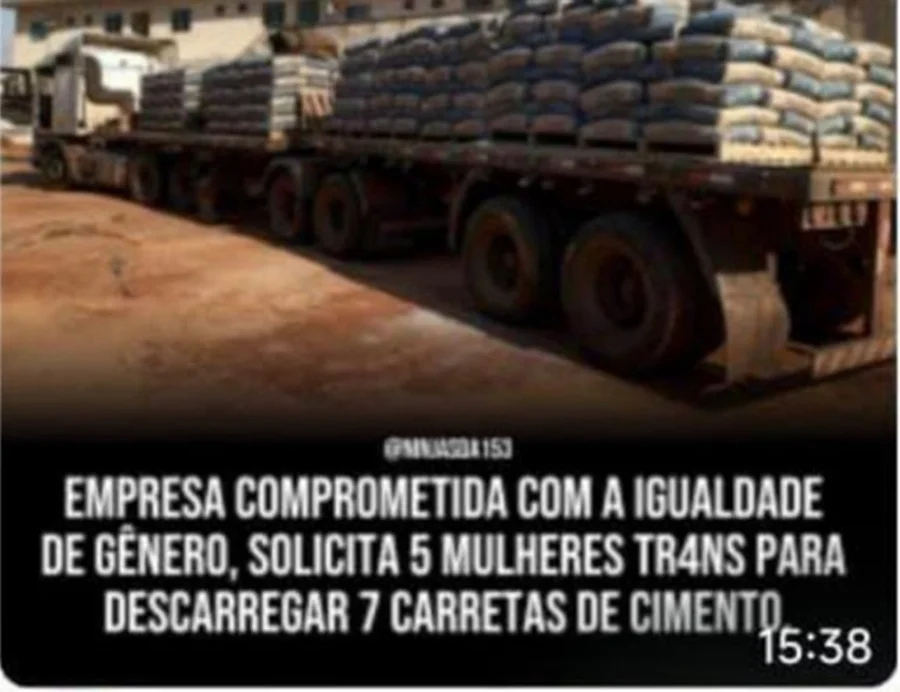Em uma das publicações, no dia 19 de março, Carvalho fez uma montagem que ridicularizava mulheres trans, utilizando a frase: “Empresa comprometida com a igualdade de gênero solicita cinco mulheres trans para descarregar sete carretas de cimento”. Essa postagem não só revelou uma atitude desrespeitosa, mas também desumanizou uma parte da população e retira o foco da luta por igualdade de direitos.