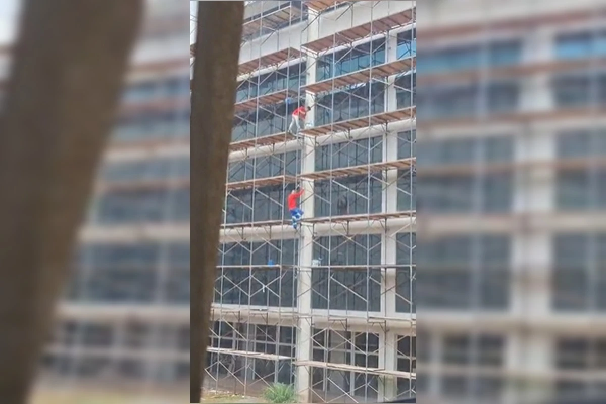 No vídeo, pode-se observar claramente um dos operários esticando uma das pernas para alcançar o outro lado da plataforma, o que coloca em risco não apenas a sua vida, mas também a do colega que opera nas proximidades. A posição precária entre os dois andaimes, enquanto ele continua a pintura da fachada do edifício, exemplifica a necessidade urgente de medidas adesivas mais rigorosas no setor da construção civil.