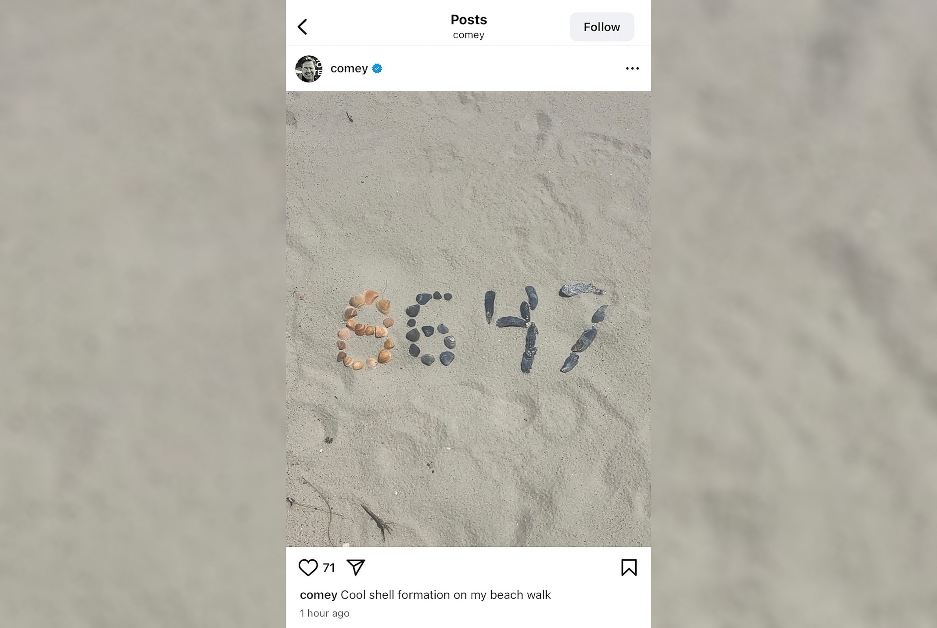 O post que desencadeou toda a controvérsia apresentava uma fotografia de conchas na praia, onde o usuário Comey capturou a formação de números “86 47”. A legenda era simples, descrevendo a imagem apenas como “Uma formação de conchas legais na minha caminhada na praia”. Contudo, apoiadores de Trump rapidamente interpretaram os números como um código para “eliminar” o presidente, levando a investigações pelo Departamento de Segurança Nacional e pelo Serviço Secreto.